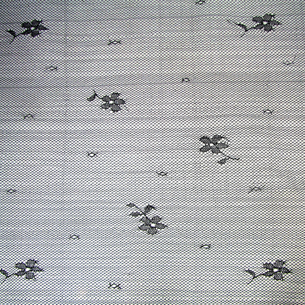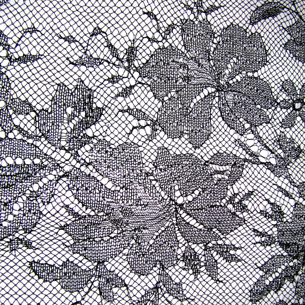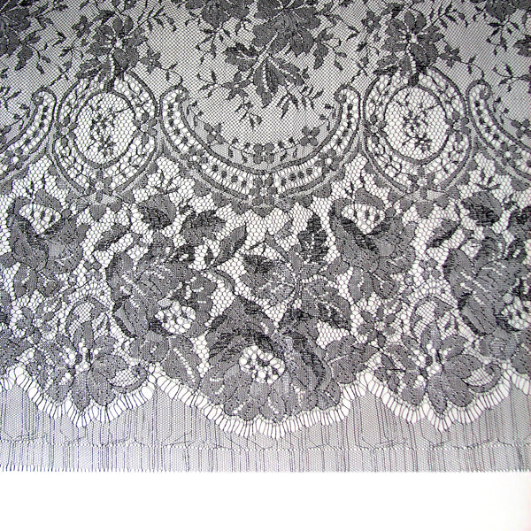 Black delicate Chantilly lace scarf with floral border.