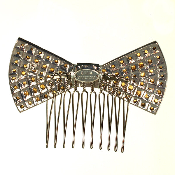 Stylish geometric bow, set with brilliant cut Swarovski Crystals.