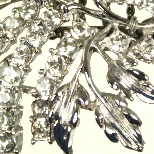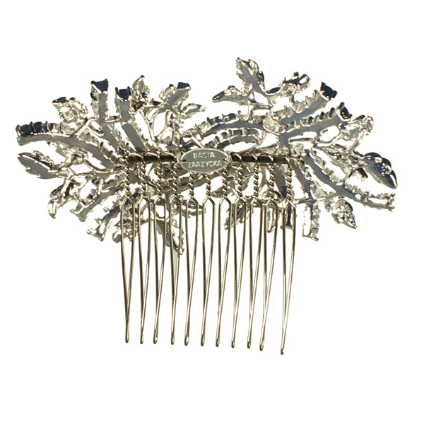 Designed as a double spray of leaves and loose ribbons. Set with brilliant cut Swarovski Crystals. made to order as a comb or hairclip.