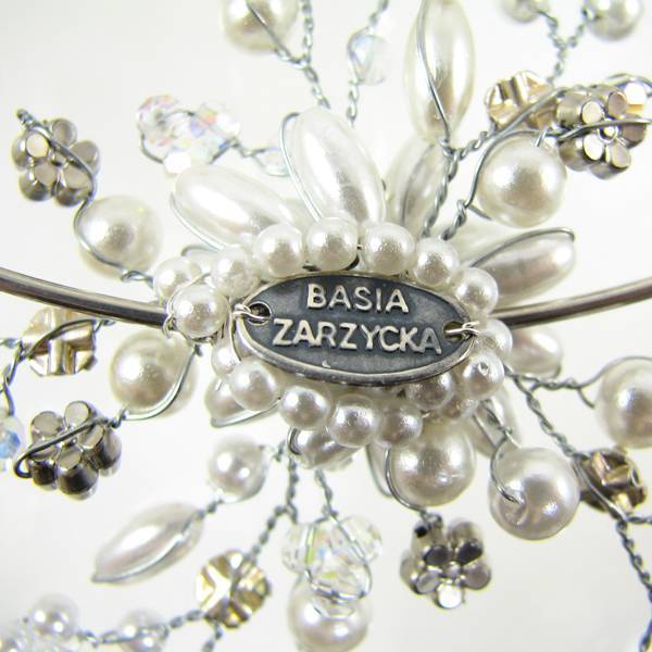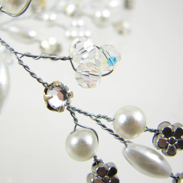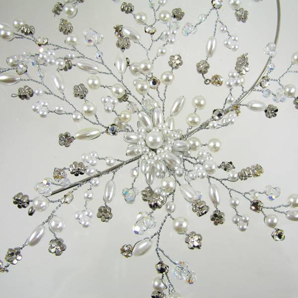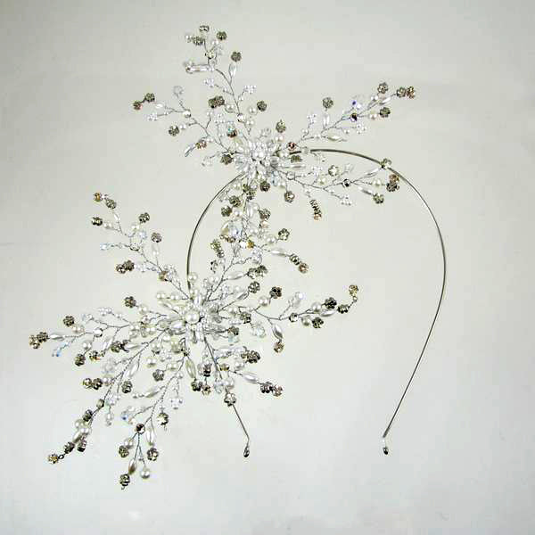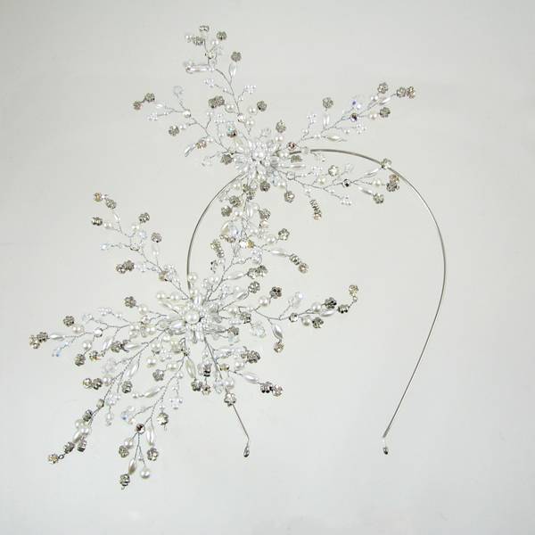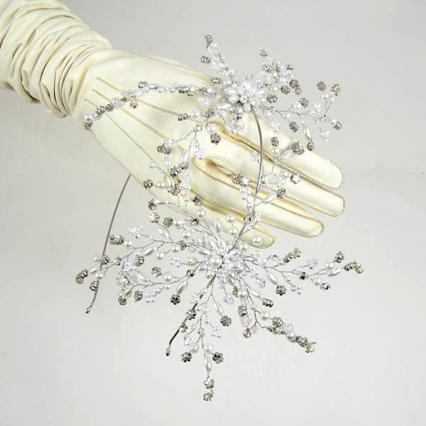 Dramatic double pearl & crystal adjustable starburst head band particularly suited for the hair.