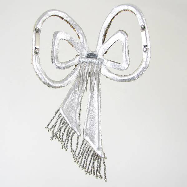 This elegant bow has been created with original Edwardian glass beads, crystal paste and fully lined with silver foiled kid leather. This bow can worn as a hair comb or as can be worn as an arm bracelet once ribbon has been treaded through the special loops attached to the underside of this very unique piece.