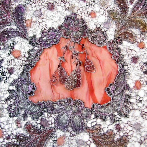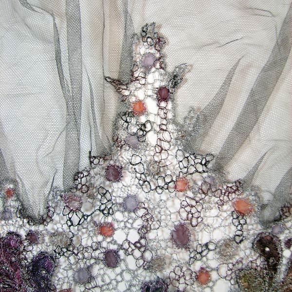 Chemical lace embroidered borders with delicate falling lace buds, inserting of chiffon mounted into a tulle base. This beautiful scarf is breathtaking and simply a pleasure to wear. 154 / 38 cm Only one.
