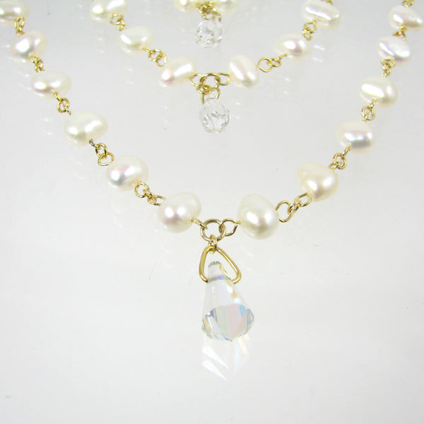 Edwardian style faux pearl lattice work adjustable necklace which can also be worn as a choker,made with bohemian glass beads, and lined with fine gloving leather.