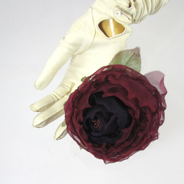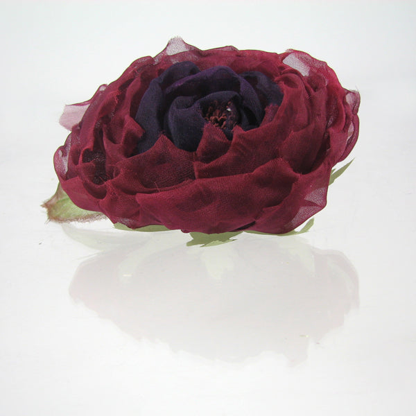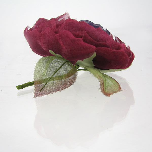 This beautiful Victorian style button rose, has been hand tooled using shaded translucant organdie silk based on a design fron the 1870''s. It can be mounted onto a comb or brooch