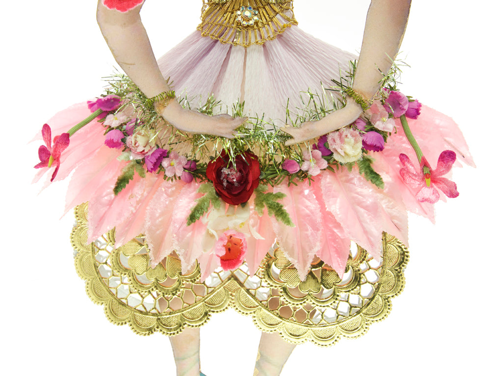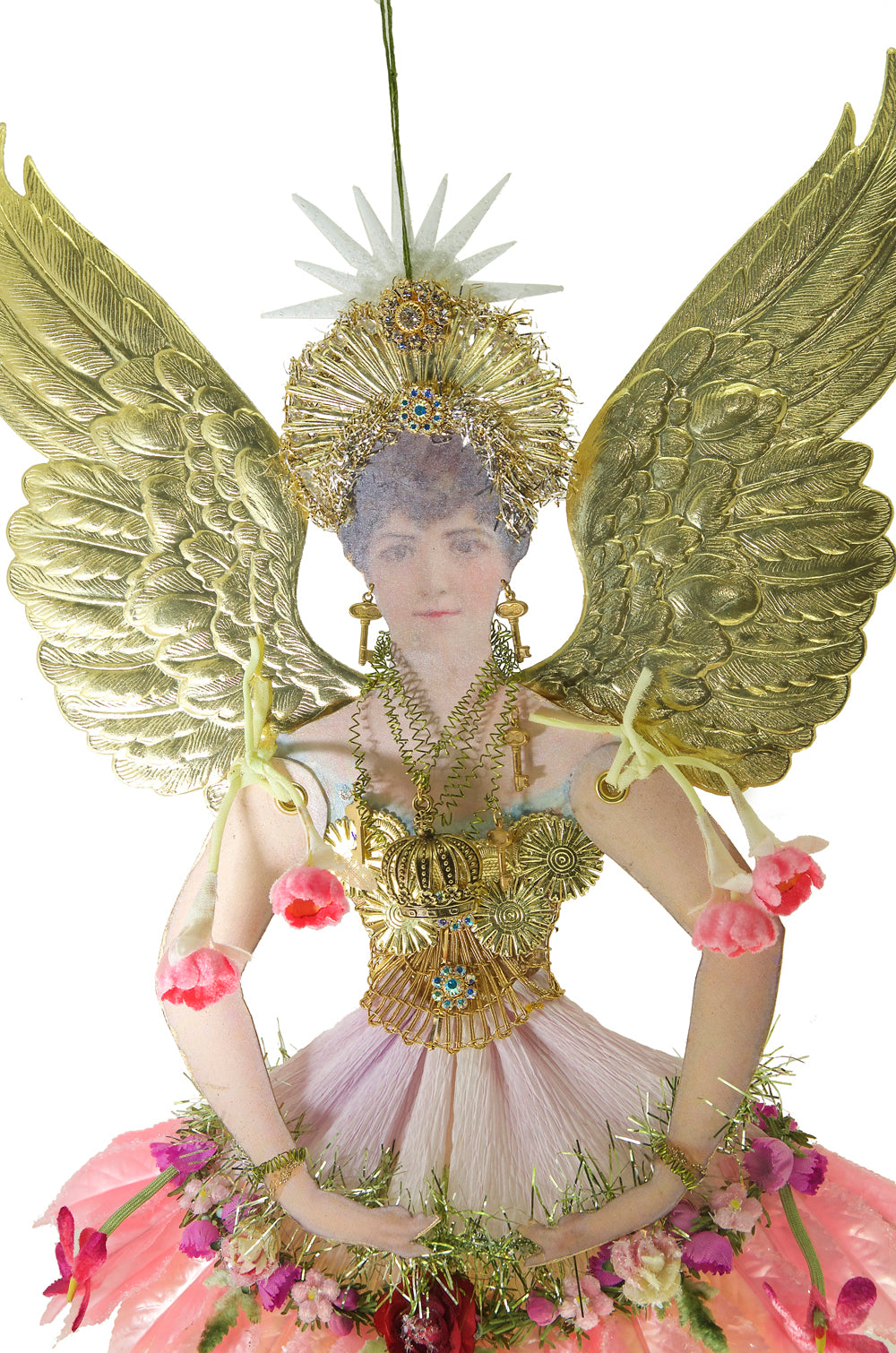 Ethereal angels and faries have been finely created from paper, with incredible detail using vintage tinsel and unusual adornments, Dresden embellishments and wonderful small antique flowers and findings I source from flea markets in Brimfield U.S.A., Paris, Belgium and Krakow. I have embellished the fantasy fairies paper crepe gowns, with beautiful vintage celluloid leaves I found in Lille Braderie this autumn and amazing treasures on each and every piece from tiara to toe. Every fairy is one-of-a-kind and part of 'The Special Edition' range hand made by Basia and tagged with a gold Basia Zarzycka label. These unusual ornate fairies are made in two sizes and are sold on a first come Basis as no two fairies are alike.