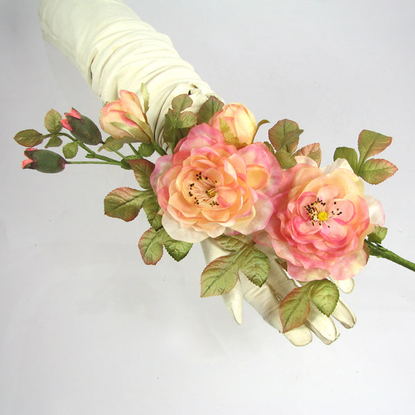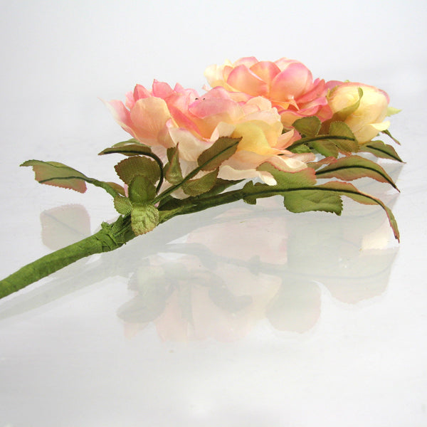 Edwardian inspired hand tooled double spray of fine silk, hand tinted roses awaiting to be worn in your hair or simply mounted onto a brooch.