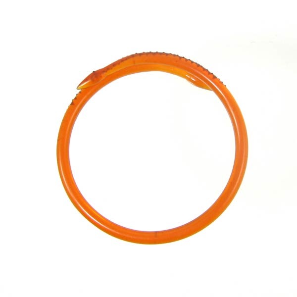 Vintage 1920''s amber coloured early plastic snake design bangle, hand set with crystal rhinestones and metal studded on the front only.